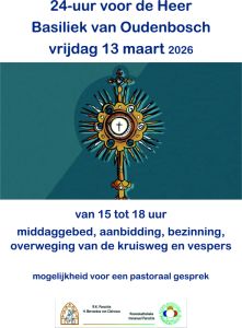 Jaarlijks nemen parochies in het Bisdom Breda deel aan het gebedsinitiatief ’24-uur voor de Heer’. Dit jaar zal dit zijn van vrijdag 13 maart 12.00 uur tot zaterdag 14 maart 12.00 uur. Doorheen het hele bisdom wordt er 24 uur achter elkaar gebeden bij het Allerheiligst Sacrament, en waar mogelijk, zal er een priester beschikbaar zijn voor het Sacrament van Verzoening. Lees verder